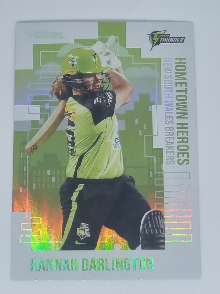 This 1-in-10 packs rarity Hometown Heroes card is a must-have for fans of Hannah Darlington and the Sydney Thunder. Add this card to your collection to celebrate her dedication and contributions to the WBBL.