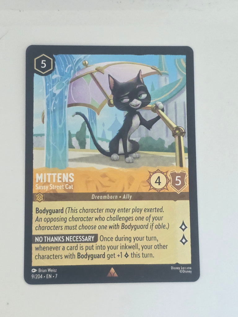 Mittens is ideal for Illumineers who enjoy calculated plays and characters with bite. With her street smarts and defensive mindset, she’s a perfect fit for decks that favour control, cunning, and a touch of sarcasm.