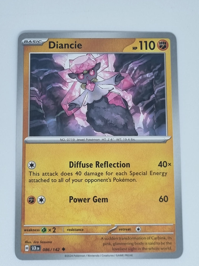 Discover the latest Diancie card from the exciting Pokémon TCG: Stellar Crown expansion! With a beautiful design and strategic gameplay value, this card is a must-have for collectors and players alike.