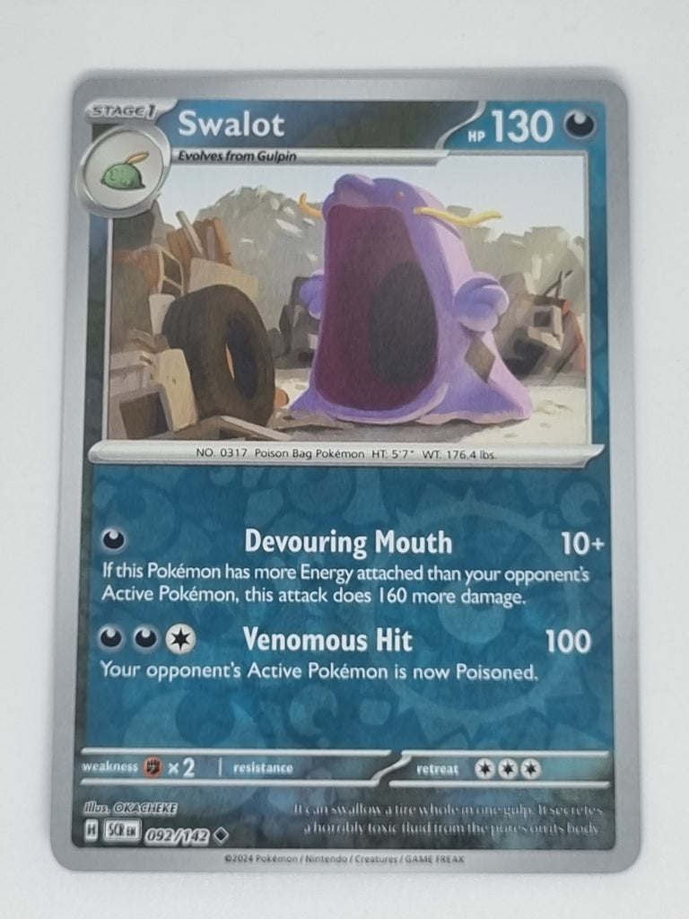 Discover the latest Swalot card from the exciting Pokémon TCG: Stellar Crown expansion! With a beautiful design and strategic gameplay value, this card is a must-have for collectors and players alike.