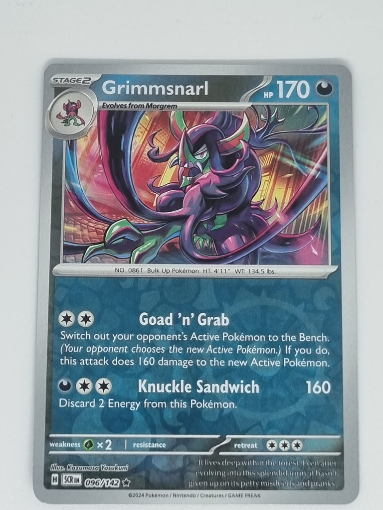Discover the latest Grimmsnarl card from the exciting Pokémon TCG: Stellar Crown expansion! With a beautiful design and strategic gameplay value, this card is a must-have for collectors and players alike.