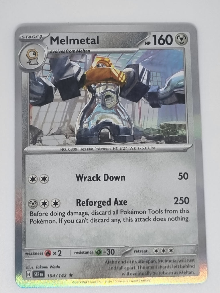 Discover the latest Melmetal card from the exciting Pokémon TCG: Stellar Crown expansion! With a beautiful design and strategic gameplay value, this card is a must-have for collectors and players alike.
