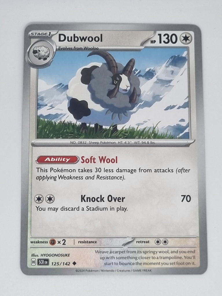 Discover the latest Dubwool card from the exciting Pokémon TCG: Stellar Crown expansion! With a beautiful design and strategic gameplay value, this card is a must-have for collectors and players alike.