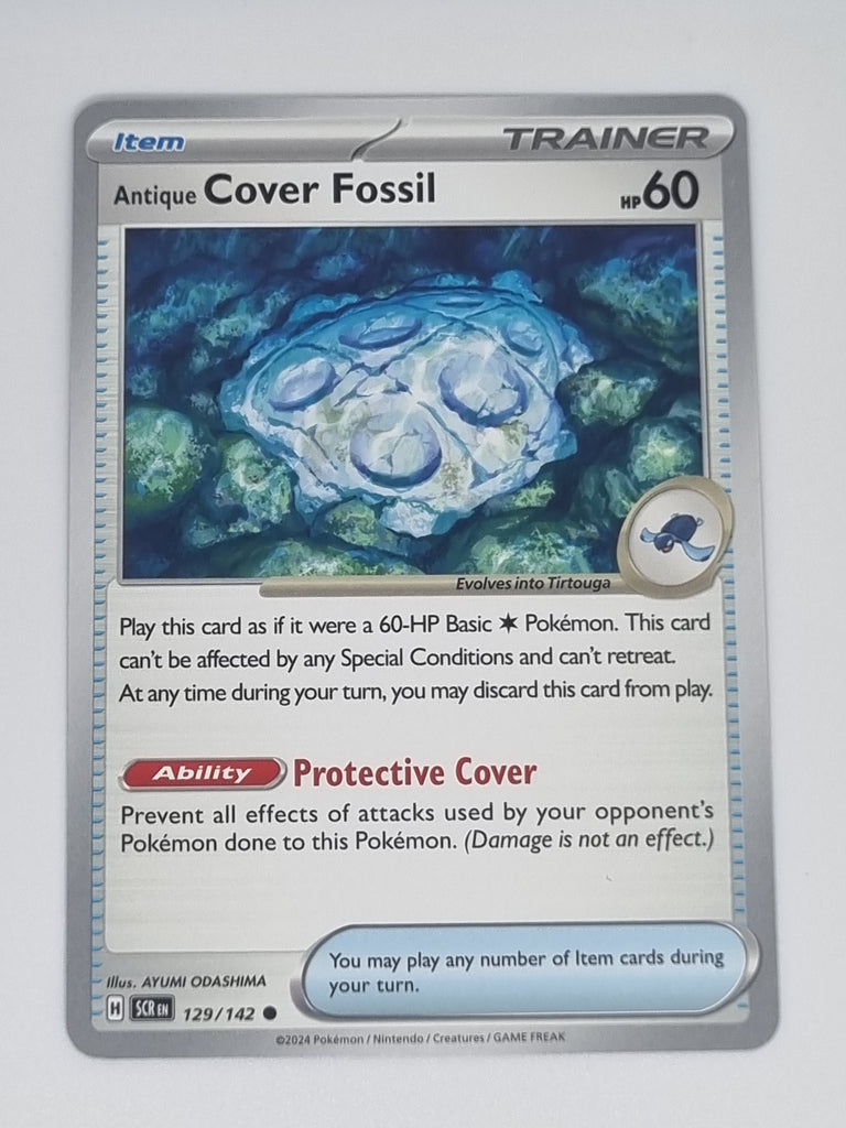 Discover the latest Antique Cover Fossil card from the exciting Pokémon TCG: Stellar Crown expansion! With a beautiful design and strategic gameplay value, this card is a must-have for collectors and players alike.