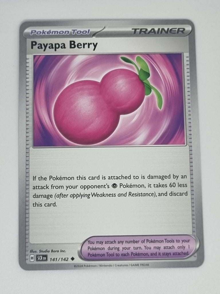 Discover the latest Payapa Berry card from the exciting Pokémon TCG: Stellar Crown expansion! With a beautiful design and strategic gameplay value, this card is a must-have for collectors and players alike.