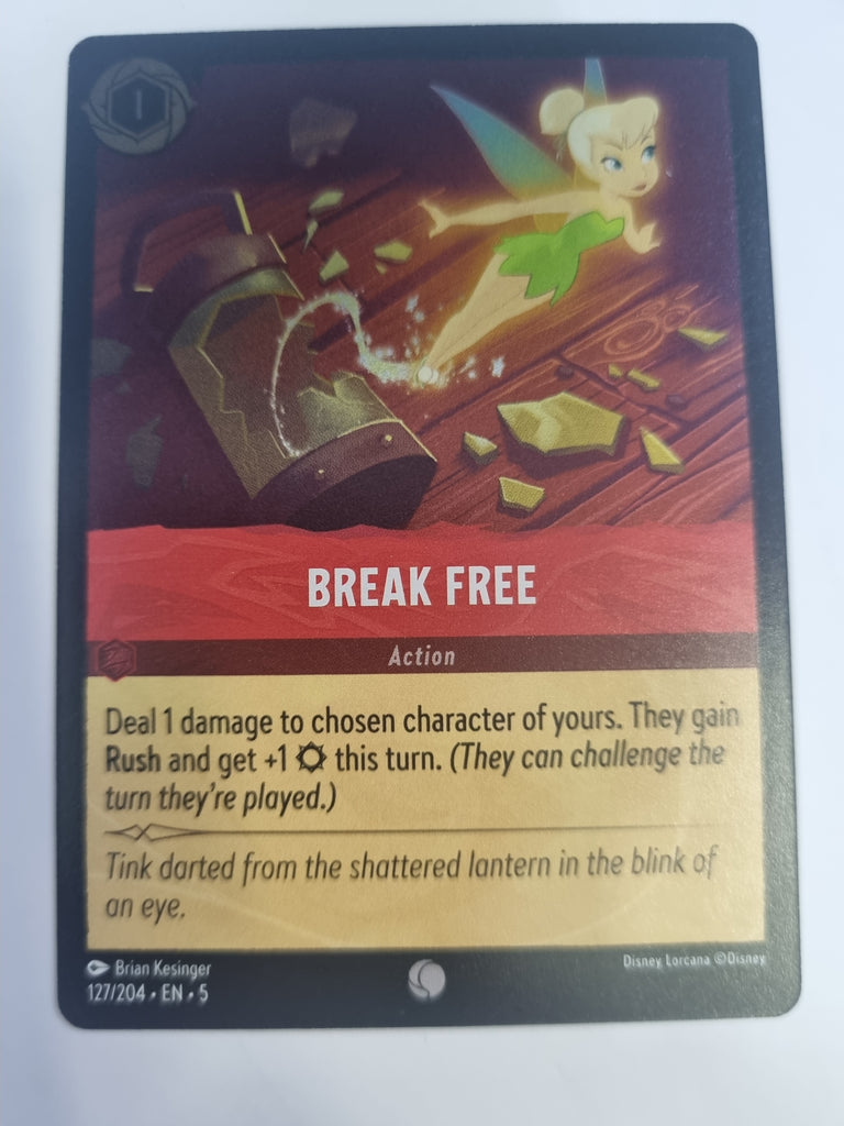 Elevate your Disney Lorcana set 5 - Shimmering Skies collection with the Break Free FOIL card. This common card features a striking foiled design that captures a moment of liberation, making it a standout addition to your deck.