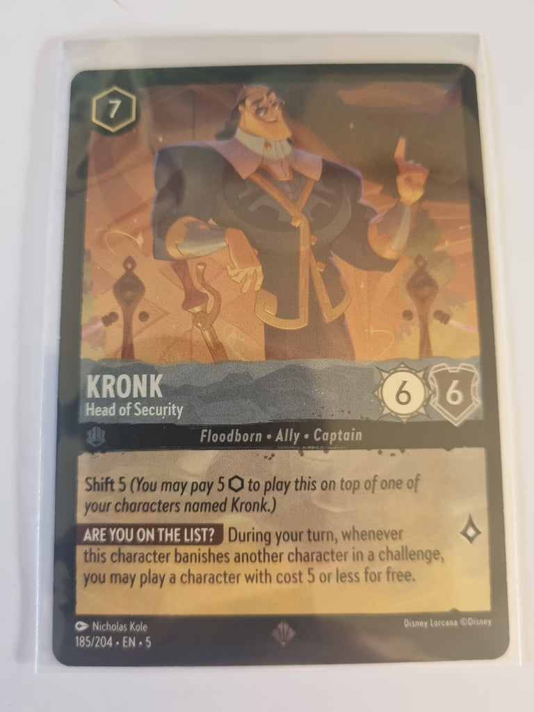 Step into the dynamic world of Disney Lorcana set 5 - Shimmering Skies with the Kronk - Head of Security card. This FOIL card is a super rare find, featured only once per pack, making it an essential addition for any collector.