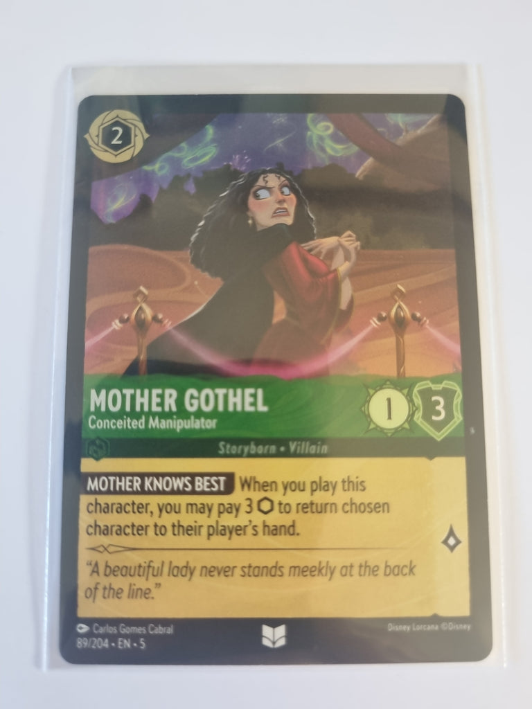 The Mother Gothel - Conceited Manipulator FOIL card captures the essence of the character with its detailed foil artwork. This card is a must-have for fans and collectors who appreciate Disney villains and their dramatic flair.