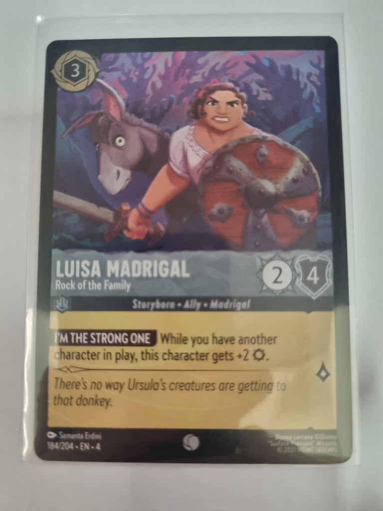 Introducing the "Luisa Madrigal - Rock of the Family" FOIL card from Disney Lorcana: Ursula's Return. This common foil card portrays Luisa Madrigal as the solid foundation and strength of her family.
